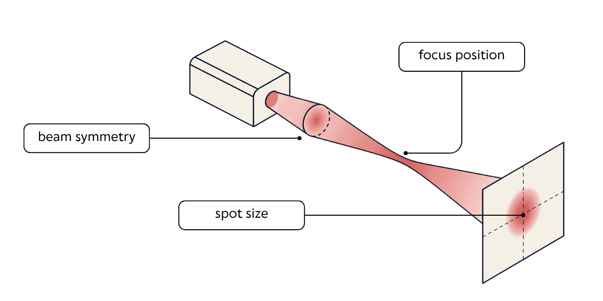 - Verify beam symmetry, focus location, and spot size